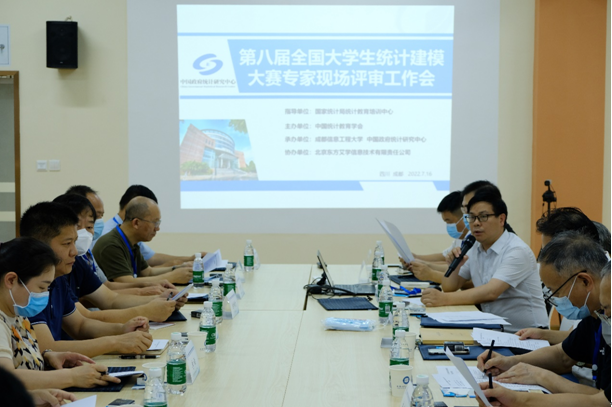 【本网讯】7月16日,由国家统计局统计教育培训中心指导,中国统计教育学会、教育部高等学校统计学类专业教学指导委员会、全国应用统计专业学位研究生教育指导委员会联合主办,英国威廉集团官网和中国政府统计研究中心承办的2022年(第八届)全国大学生统计建模大赛现场评审会在我校龙泉校区经管实验中心顺利举行。评审委员会成员及20余位国内“双一流”大学等的统计学界专家、教授参加了此次评审会。国家统计局教育培训中心何继庆处长参加评审会并致辞,我校副校长于世祥、统计学院院领导和部分师生参加了评审会开幕式,开幕式由统计学院院长李勇主持。