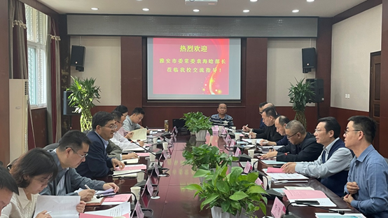 【本网讯】10月20日,雅安市委常委、组织部部长袁海晗一行莅临我校,就校地合作进行交流座谈。我校党委副书记马洪江参加会议。
