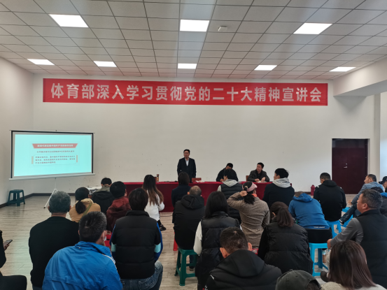 【本网讯】11月4日上午,学校党委副书记马洪江到体育部就学习贯彻党的二十大精神作宣讲报告,体育部主任程艺主持宣讲会,全体教师参加了会议。